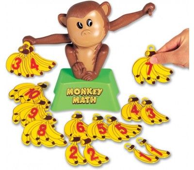 Just hang an equal number of colourful bananas from each of the monkey's hands. If you've done your addition correctly, the monkey will look straight ahead and his arms will be level. If the numbers are not equal, his eyes will be crossed and his arms will be up and down.