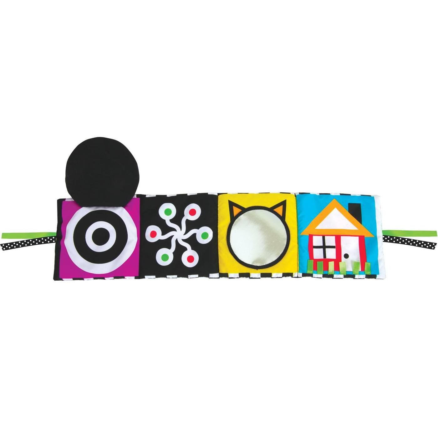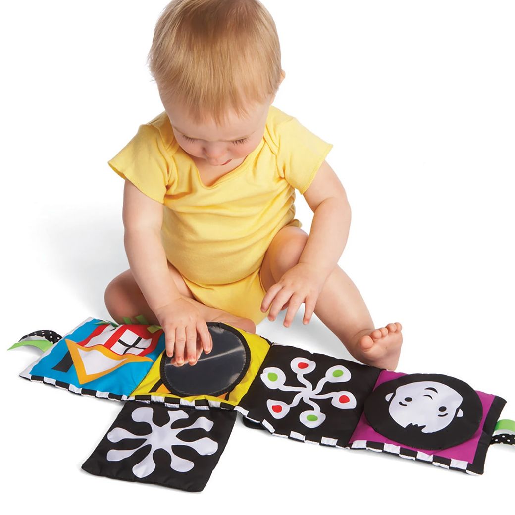 The soft nursery novel features classic development prints, crinkle paper flaps, a mirror and ribbon ties to close or attach to various play areas.